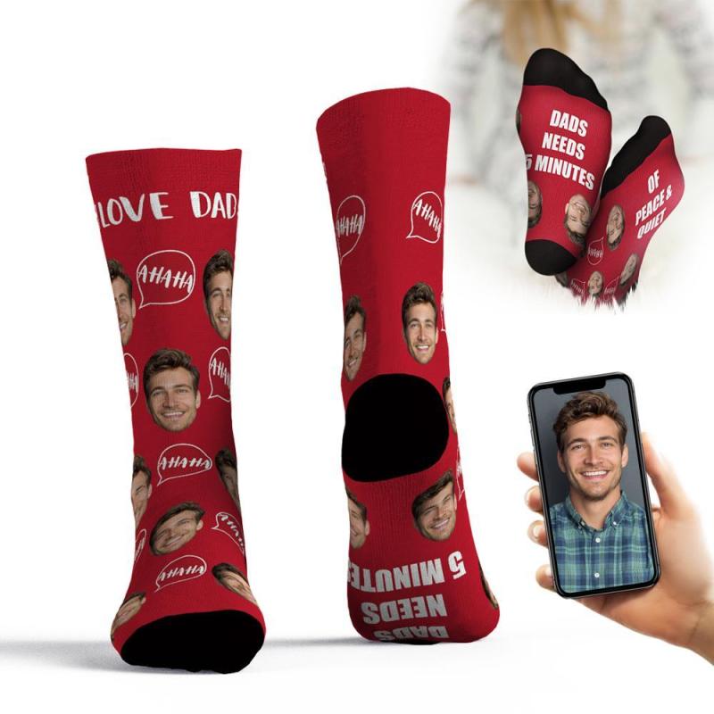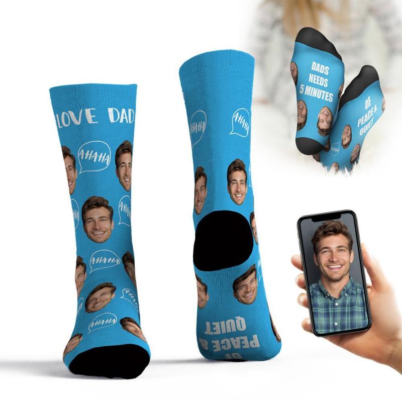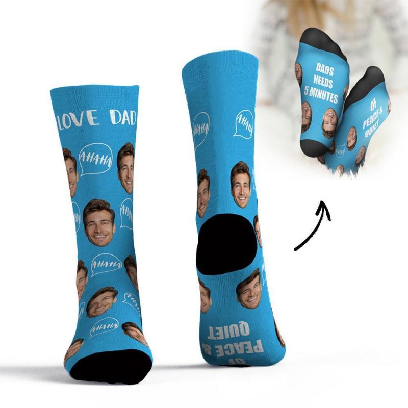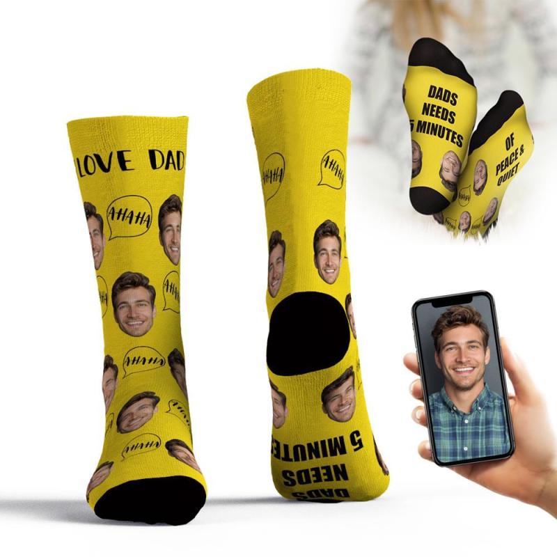 Chaussettes Personnalisées Ajouter Des Images Et Un Nom Cadeau De Fête Des Pères - Papa A Besoin De 5 Minutes De Paix Et De Tranquillité