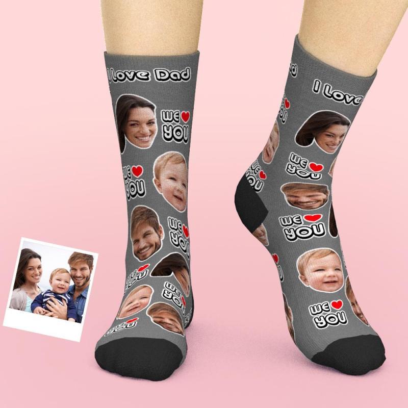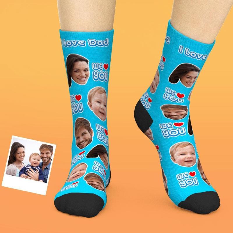 Chaussettes Personnalisées Ajouter Des Images Et Nom Cadeau De Fête Des Pères - Nous T'Aimons