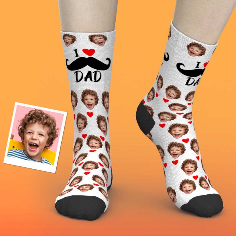 Chaussettes Visage Personnalisées Coeur J'aime Papa Meilleurs Cadeaux Pour Papa
