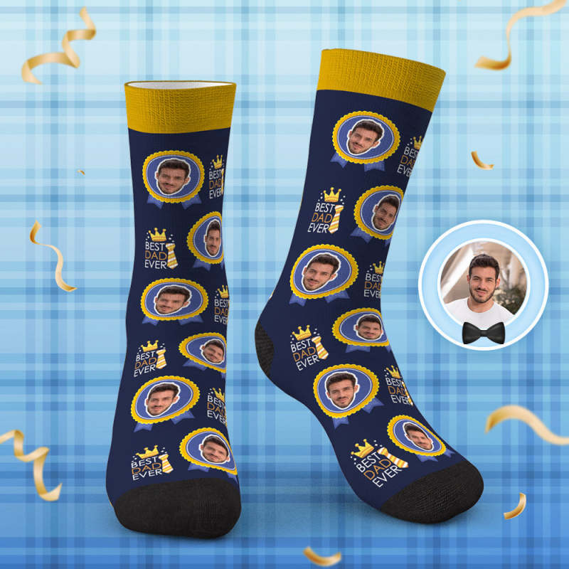 Chaussettes Visage Personnalisées Médaille Et Cravate Cadeaux De Fête Des Pères