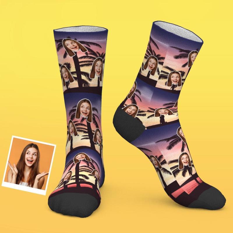 Chaussettes Visage Personnalisées Palmier De La Nouveauté Élément Chaussettes Tropicales