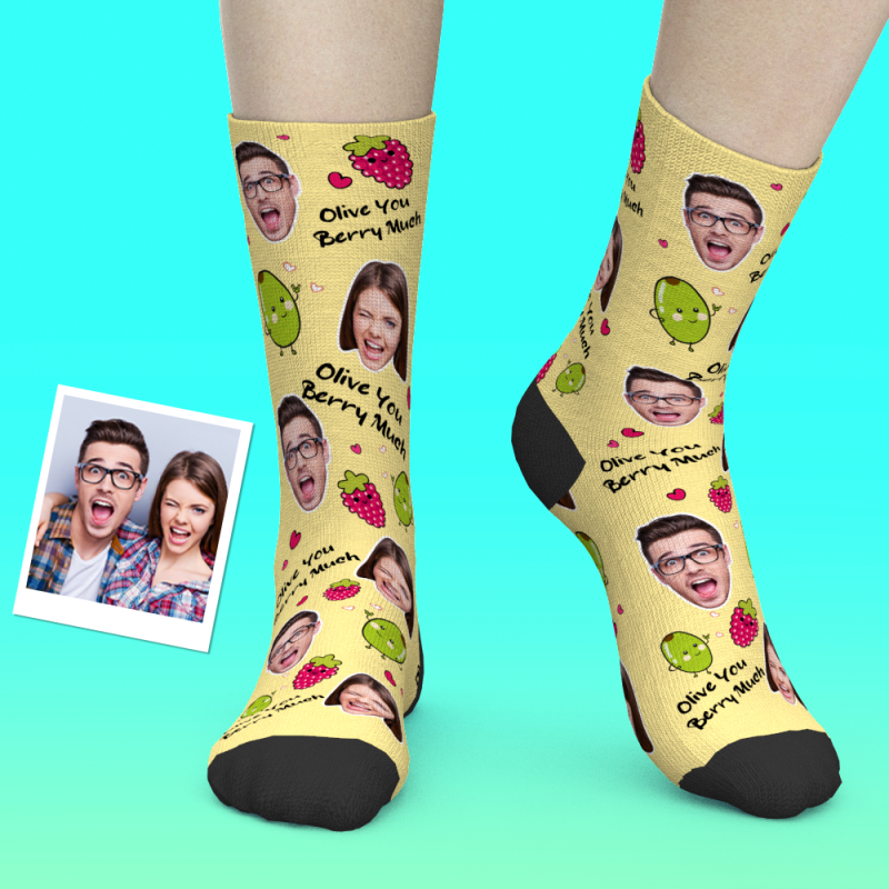 Chaussettes Visage Personnalisées Cadeaux Personnalisés - Olive You Berry Much