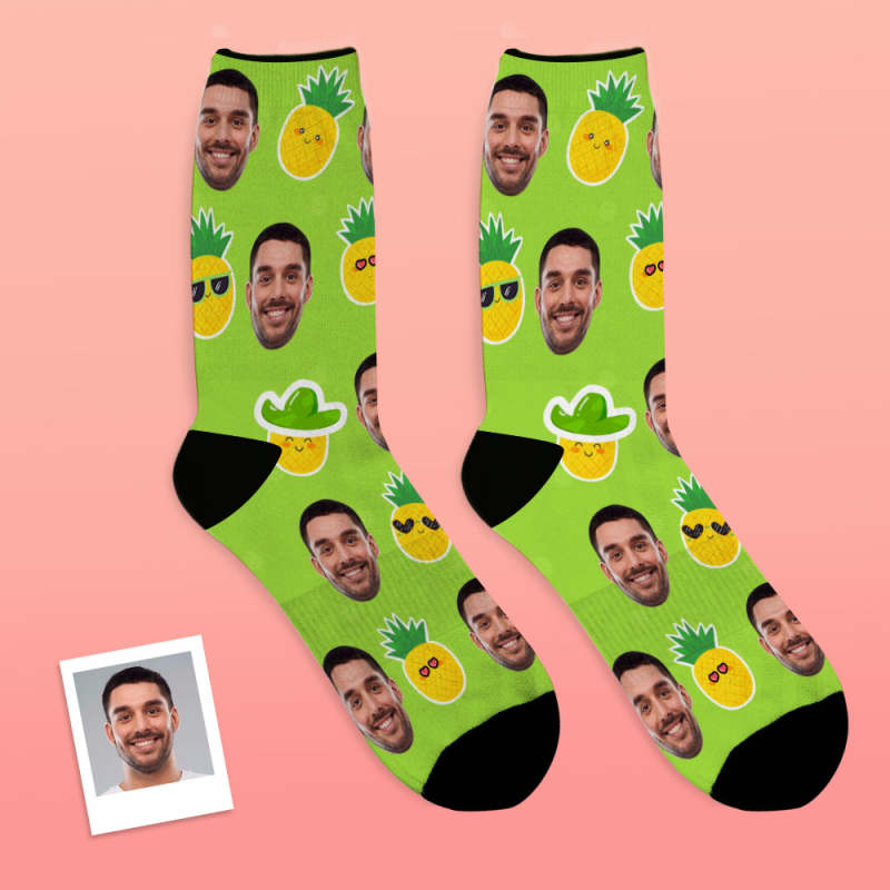 Chaussettes Visage Personnalisées L'Ananas Visages Amusants Fête De Fruits Coeurs Tropicaux Chaussettes Unisexes