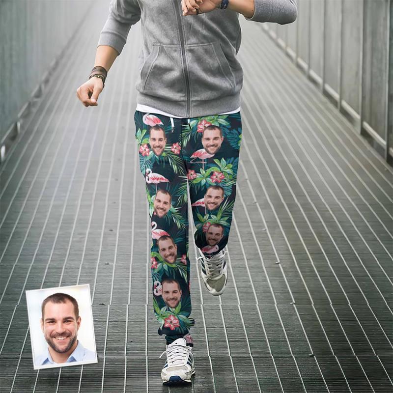 Pantalons De Survêtement Visage Personnalisé Conception Hawaïenne Personnalisée Jogging Unisexe - Cadeau Pour Amoureux