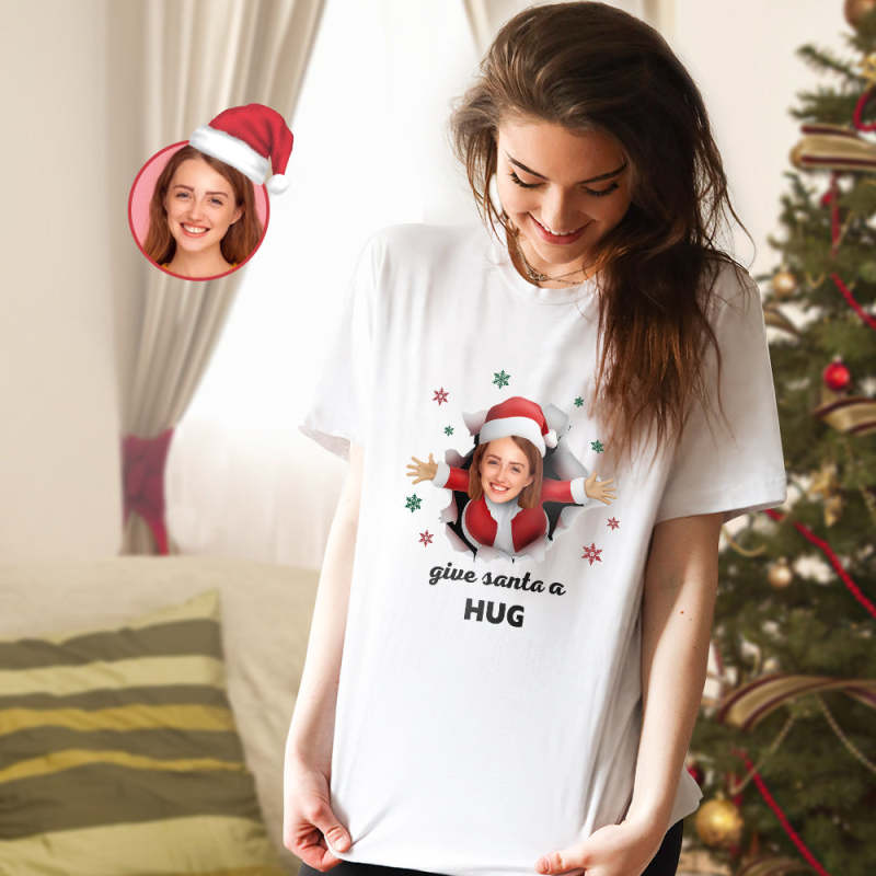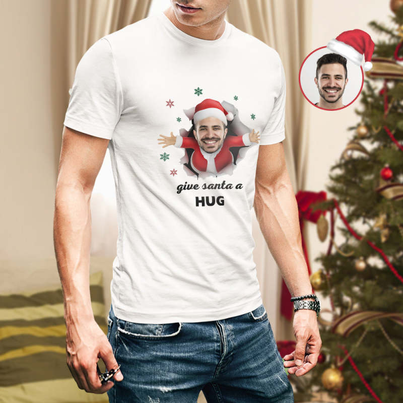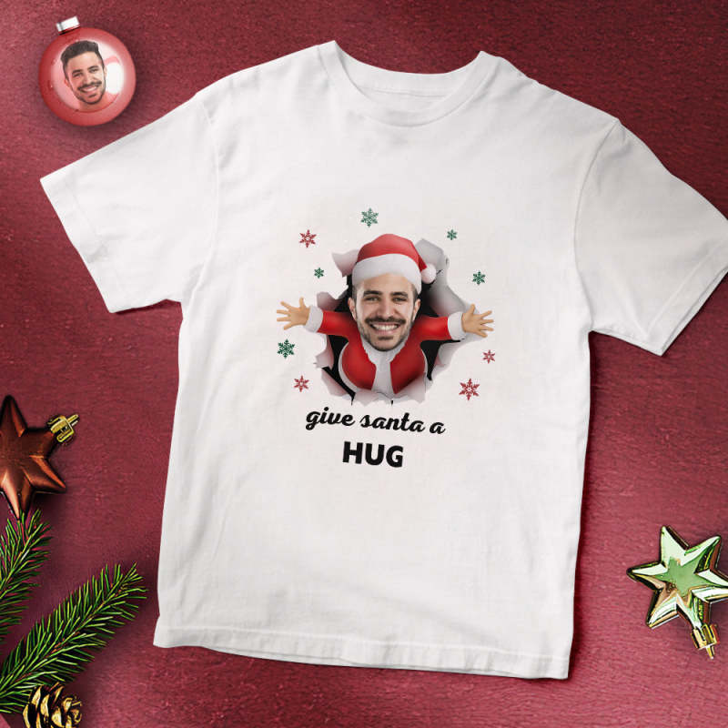 T-shirt Visage Personnalisé Give Santa A Hug Cadeaux De Noël Personnalisés