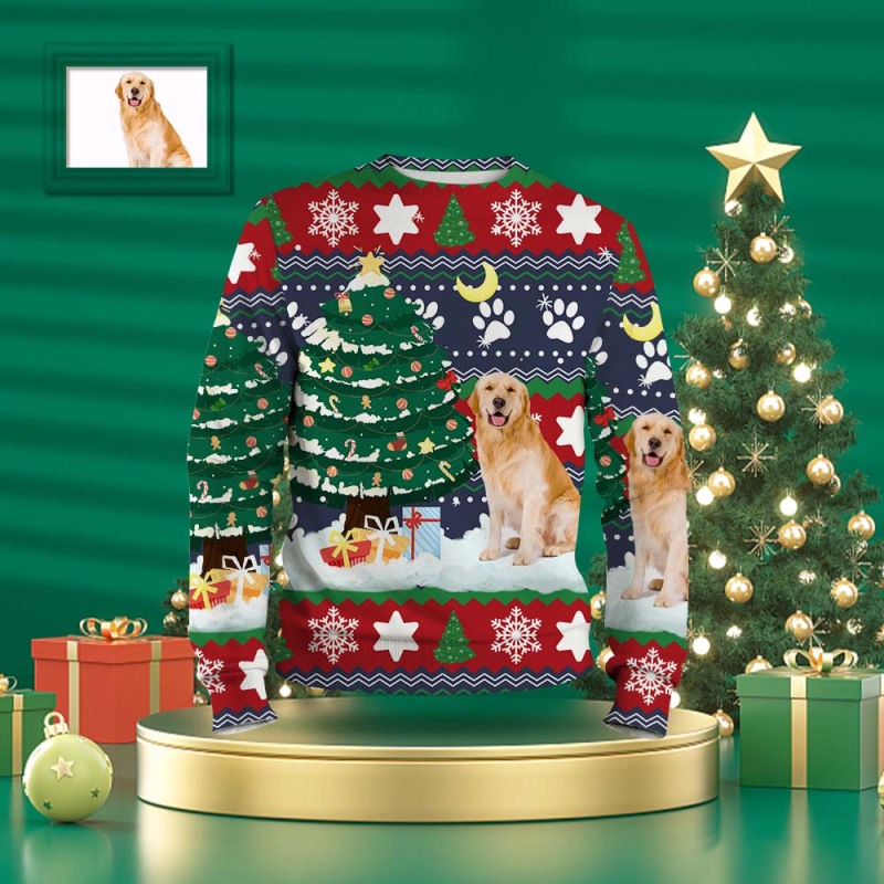 Visage Personnalisé Unisexe Sweat-shirt De Noël Décontracté Sapin De Noël Personnalisé Chien Photo Chemise À Col Rond