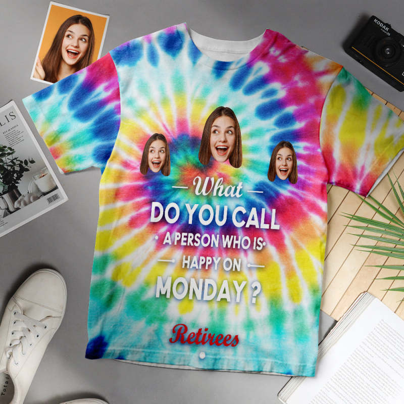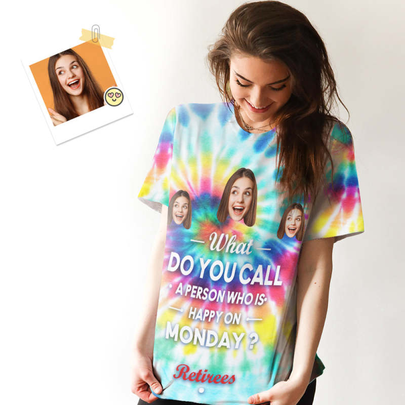 T-shirt Femme Visage Personnalisé Personne Heureuse Le Lundi Retraite Cadeau
