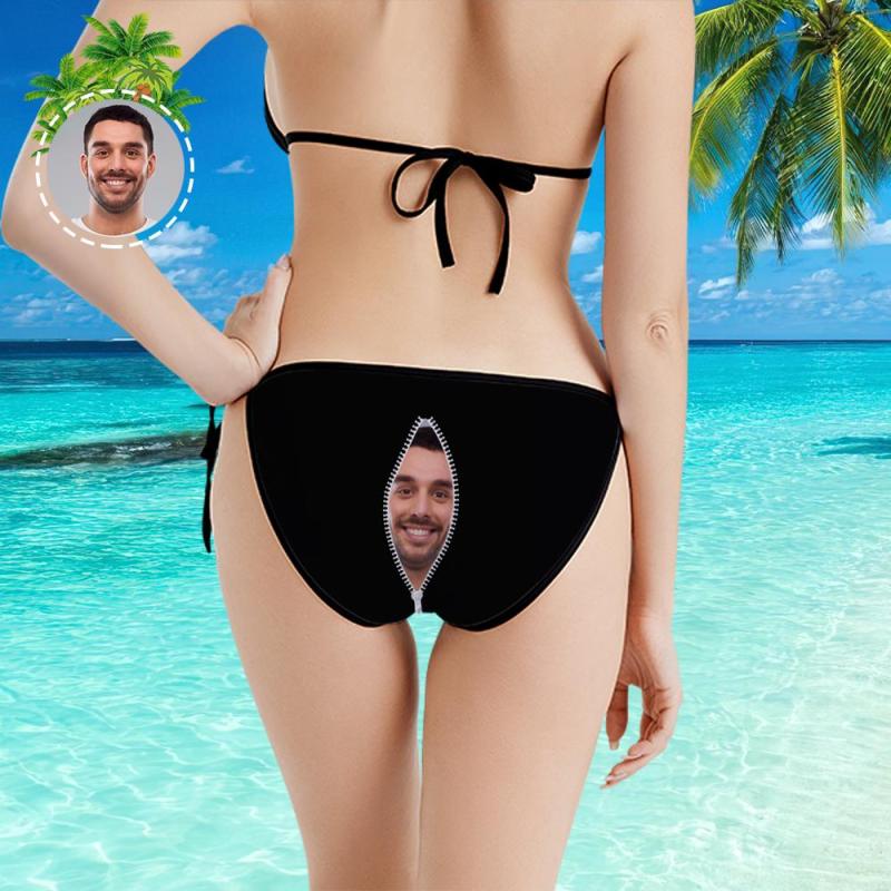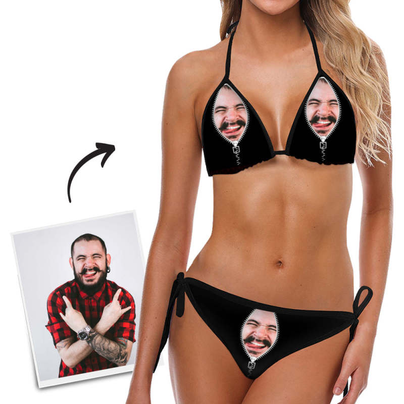 Bikini visage personnalisé Maillot de bain photo segmenté sexy pour femmes Cadeaux pour femmes - Fermeture éclair