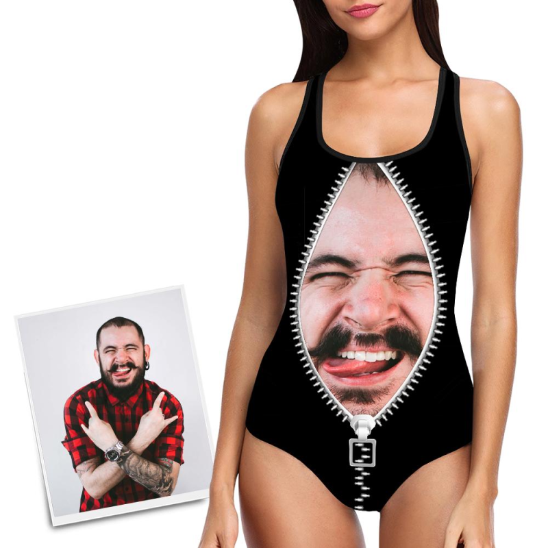 Maillots de bain visage personnalisés aux femmes Photo Caleçon Maillot de bain une pièce Cadeau pour elle - Fermeture éclair