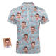 Polo Personnalisé Flamingo Blue Floral Pour Homme Avec Visage Personnalisé Et Fermeture Éclair
