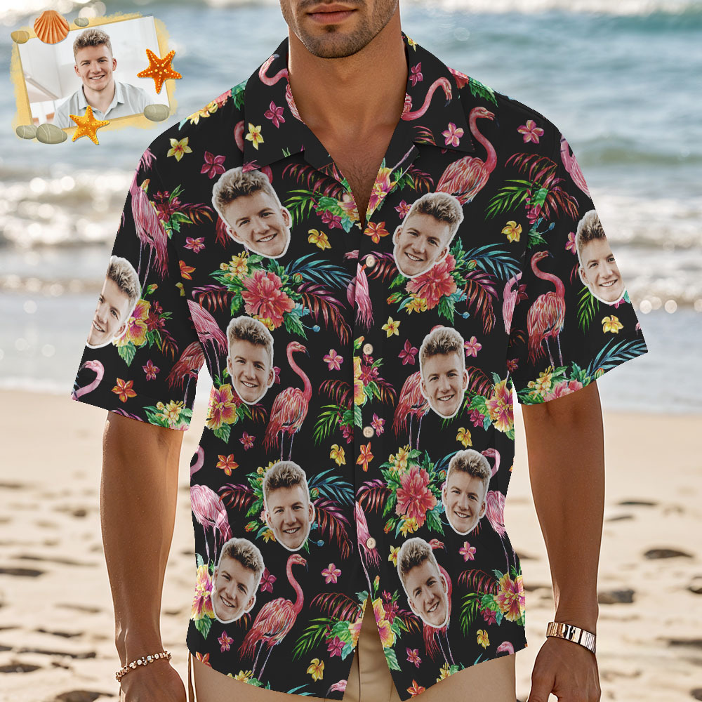 Chemise Hawaïenne Personnalisée Avec Photo De Flamant Rose, Chemise Hawaïenne Amusante Pour Les Vacances