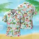 Chemise Hawaïenne Personnalisée, Chemise Verte Fraîche Avec Fleur De Flamant Rose, Chemise Hawaïenne Photo Personnalisée, Chemises De Fête De Vacances Amusantes