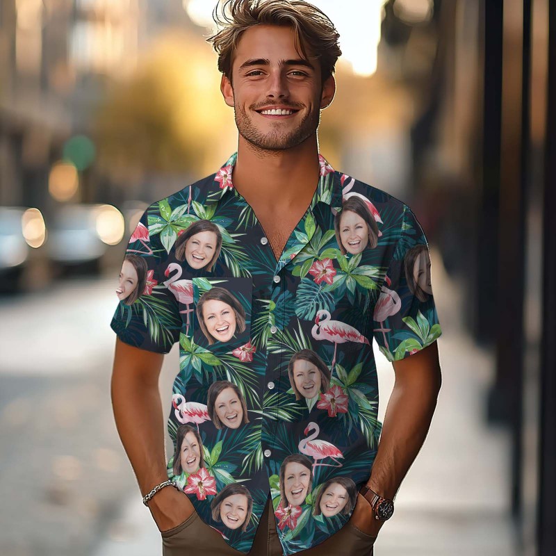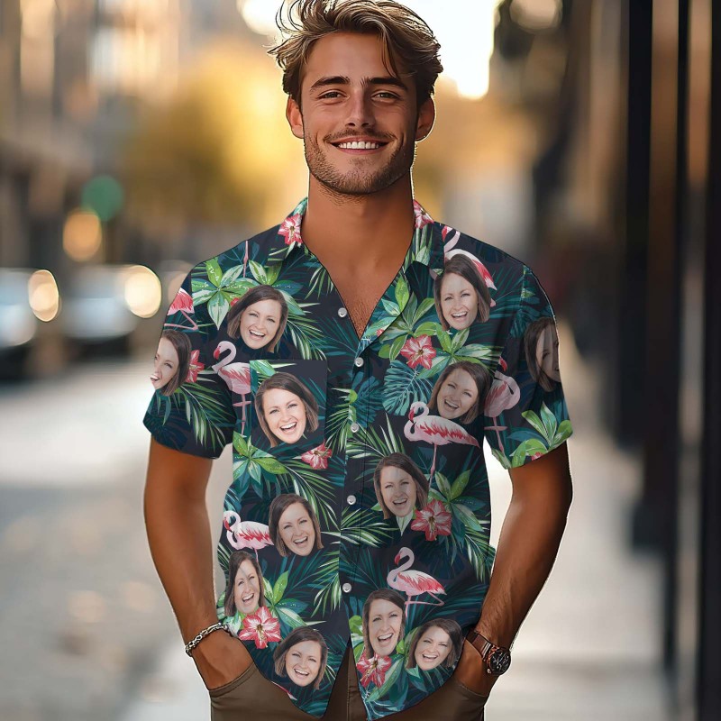 Chemise Hawaïenne Personnalisée Avec Visage Chemise Aloha D’été Tropicale Personnalisée Avec Cadeau De Poche Pour Les Amoureux