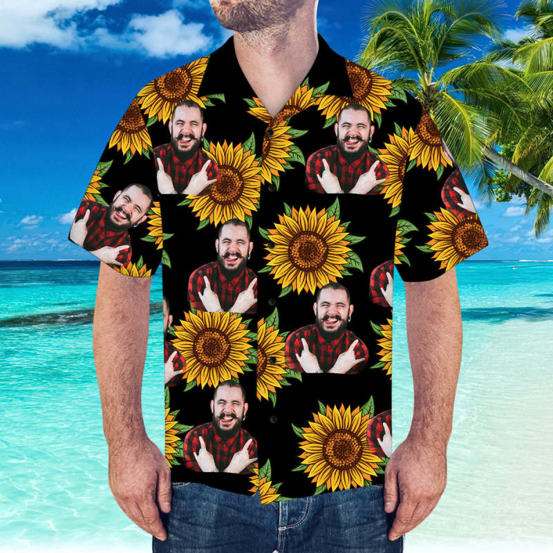 Chemise Hawaïenne Personnalisée Avec Chemise De Tournesol Et De Feuilles De Visage De Mari Pour La Fête De Plage