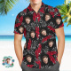 Chemises Hawaïennes Personnalisées Feuilles Colorées Aloha Chemise De Plage Rouge Foncé