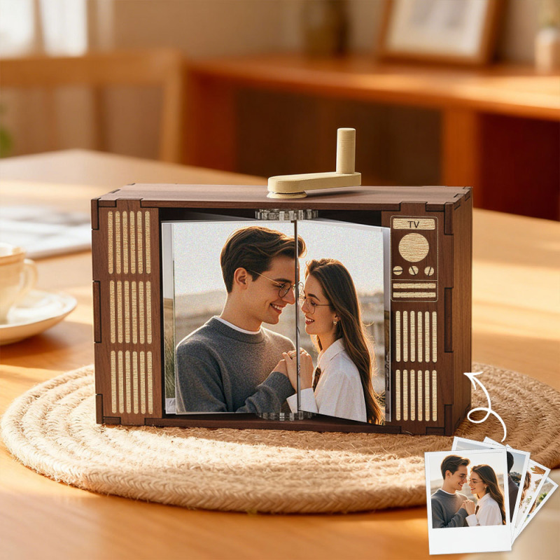 Boîte À Flipbook Musicale À Manivelle Avec Cadre Photo Horizontal Personnalisé Et Animation, Cadeau Idéal Pour La Saint-valentin.