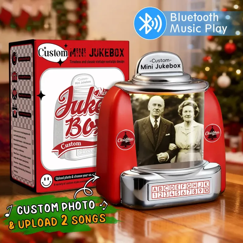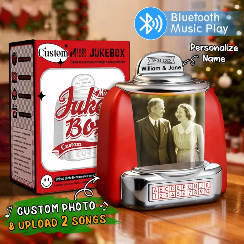 Mini Jukebox Rétro Personnalisé – Lecteur De Musique Miniature Avec Photo, Noms Et Date, Radio Bluetooth | Décoration De Table Vintage, Cadeau Nostalgique