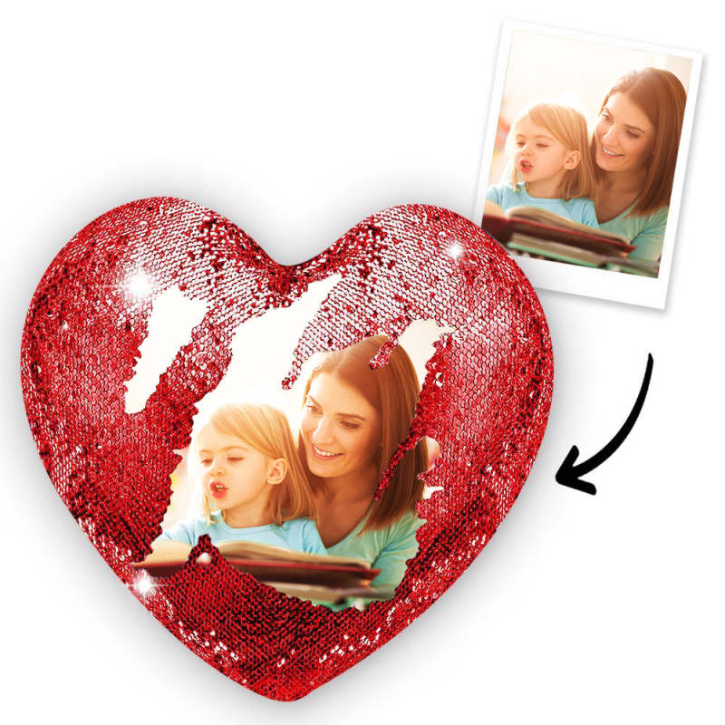 Personnalisé Coeur d'amour Photo Magie Oreiller de Paillettes