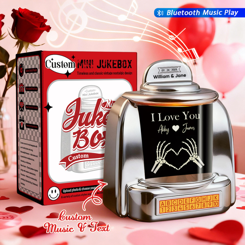 Mini Jukebox Rétro Personnalisé Avec Texte Et Musique Bluetooth – Cadeau Pour Couples, Anniversaire Et Saint-valentin