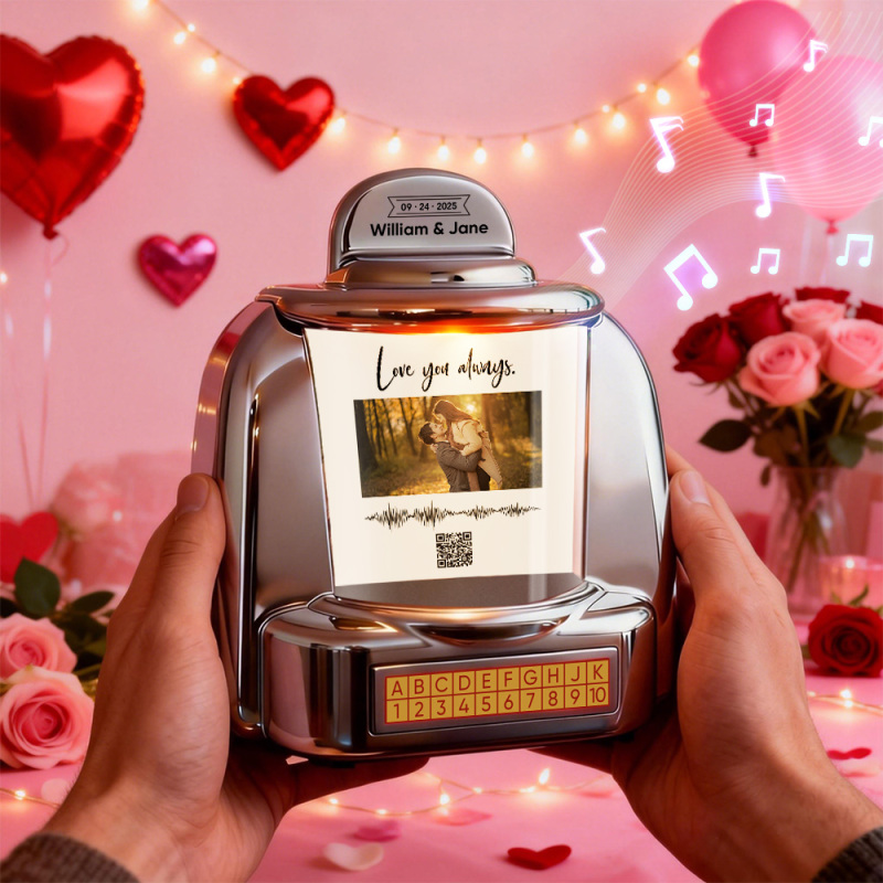 Mini Jukebox Personnalisé Avec Photo, Code Qr Et Onde Sonore – Jukebox Bluetooth Personnalisé Avec Photo, Musique Et Texte, Cadeau Idéal Pour Les Couples