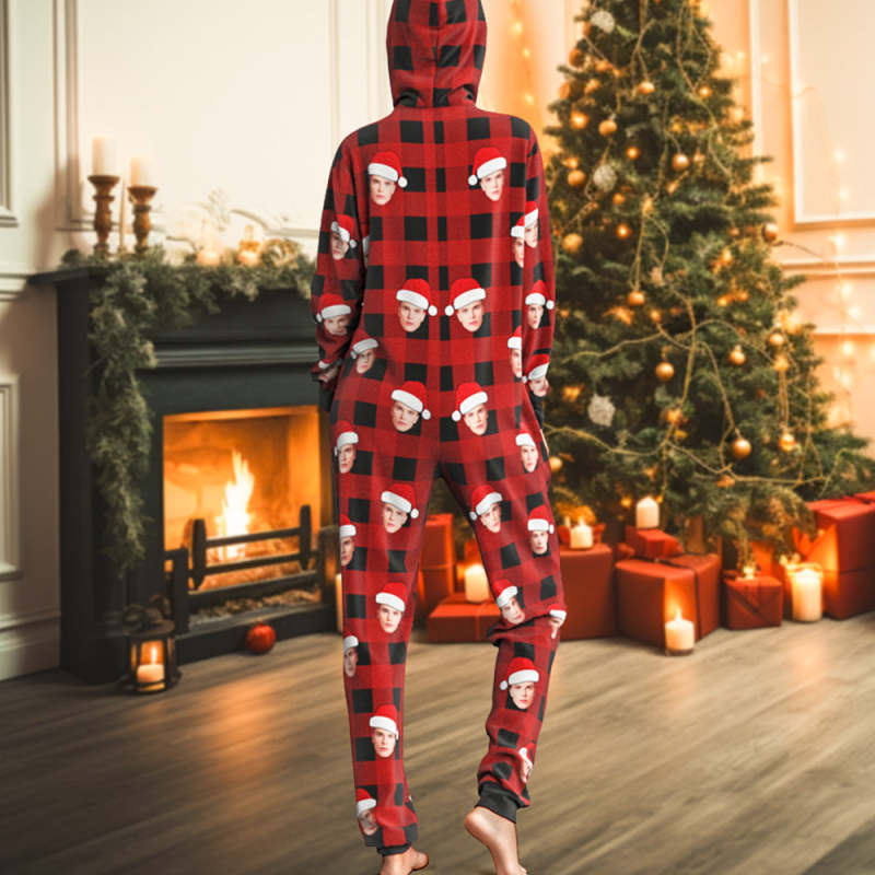 Pyjama Photo Personnalisé, Vêtements De Nuit Une Pièce, Combinaison À Carreaux Rouge Et Noir, Vêtements De Maison, Cadeau De Noël