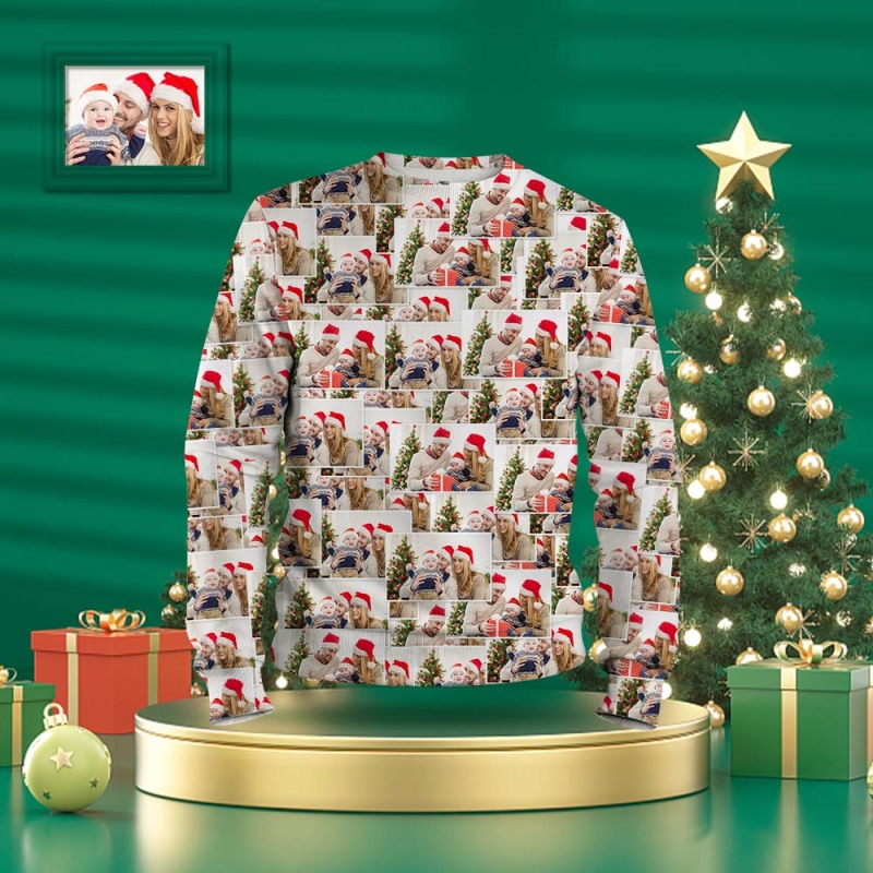 Photo Personnalisée Sweat De Noël Unisexe Décontracté Imprimé Photo De Famille Personnalisé Chemise À Col Rond