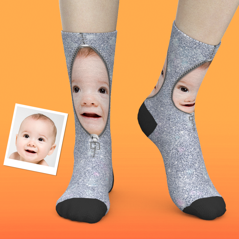 Chaussettes Visage Personnalisées Fermeture Éclair Brillante