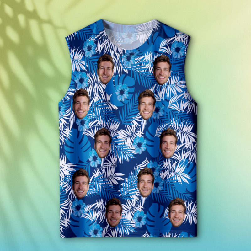 Débardeurs Visage Épais Personnalisés Chemise Sans Manches Pour Hommes Partout Imprimé Bleu