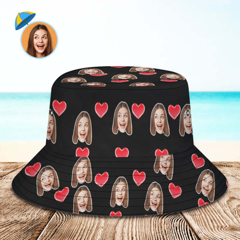 Personnalisez Votre Photo Visage Et Animal De Compagnie Chapeau De Seau D'été Chapeau De Pêcheur - Coeur Noir