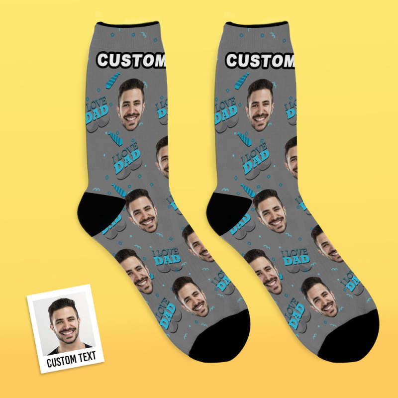 Chaussette Personnalisé en Photo J'aime Papa Chaussette Visage Bleu
