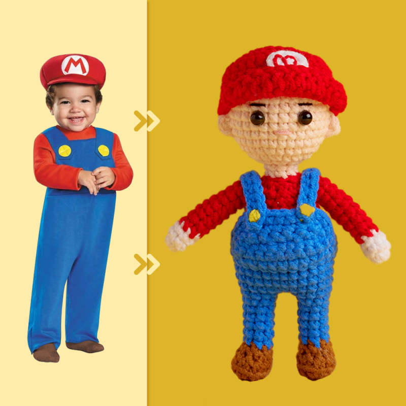 Corps Complet Personnalisable 1 Personne Poupée Au Crochet Personnalisée Cadeaux Personnalisés Mini Poupées Tissées À La Main - Mario