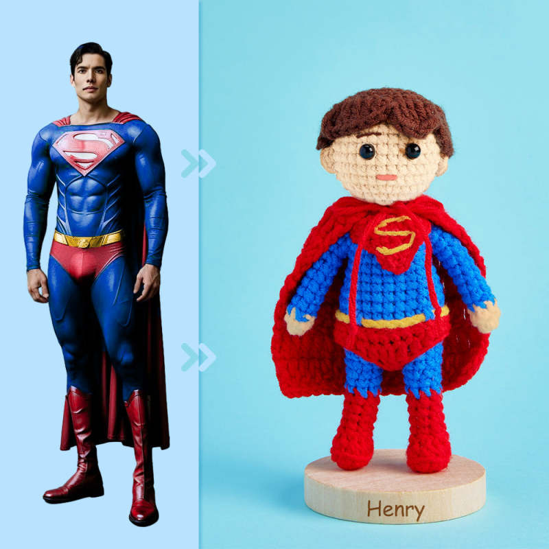 Corps Complet Personnalisable 1 Personne Poupée Au Crochet Personnalisée Cadeaux Personnalisés Mini Poupées Tissées À La Main - Superman