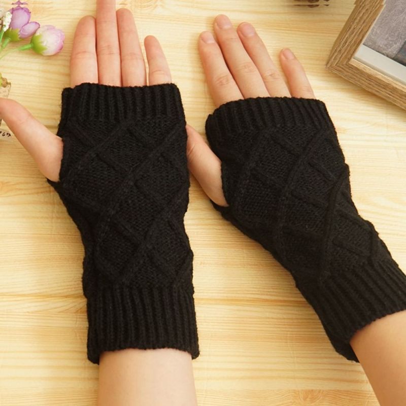 Gants Femme Hiver Demi Doigt Protection Chaud Et Froid Manches Courtes Tricotées
