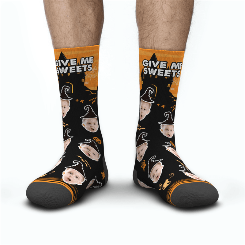 Chaussettes Personnalisées Halloween Photo Chateau Sorcière avec Texte