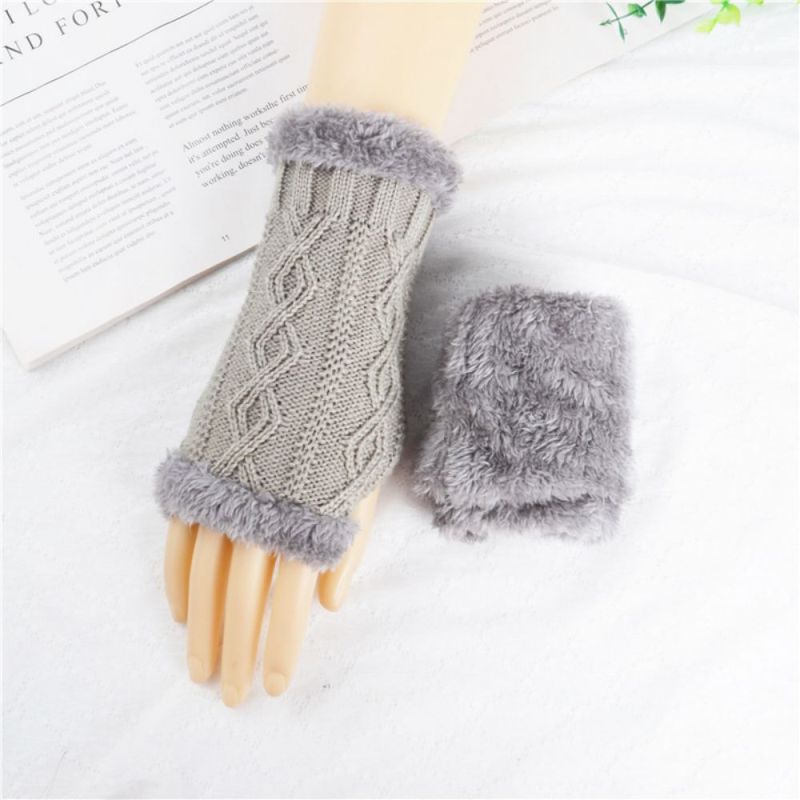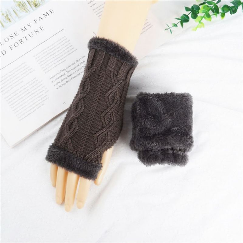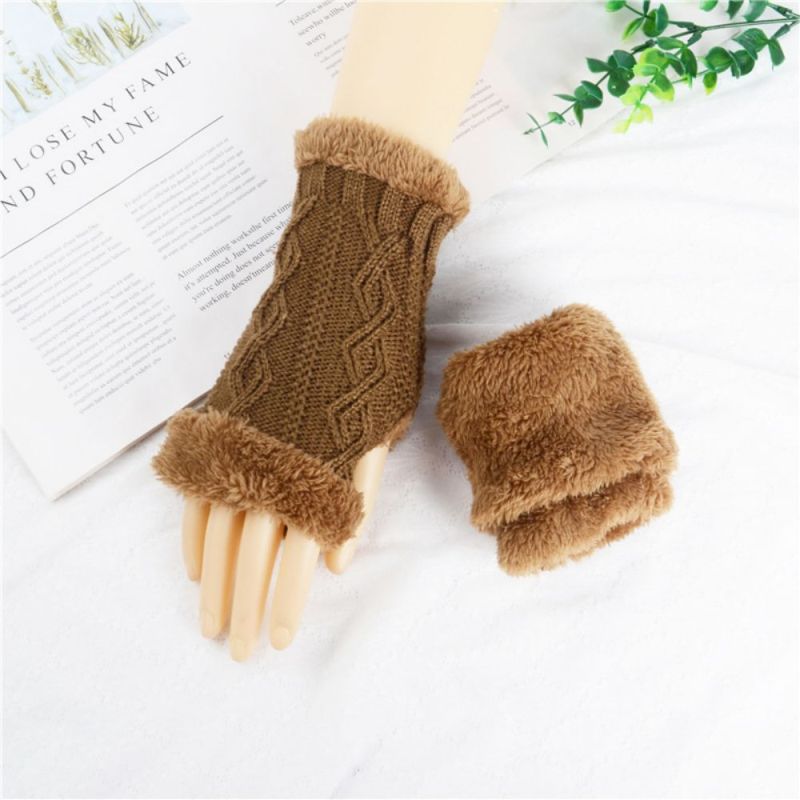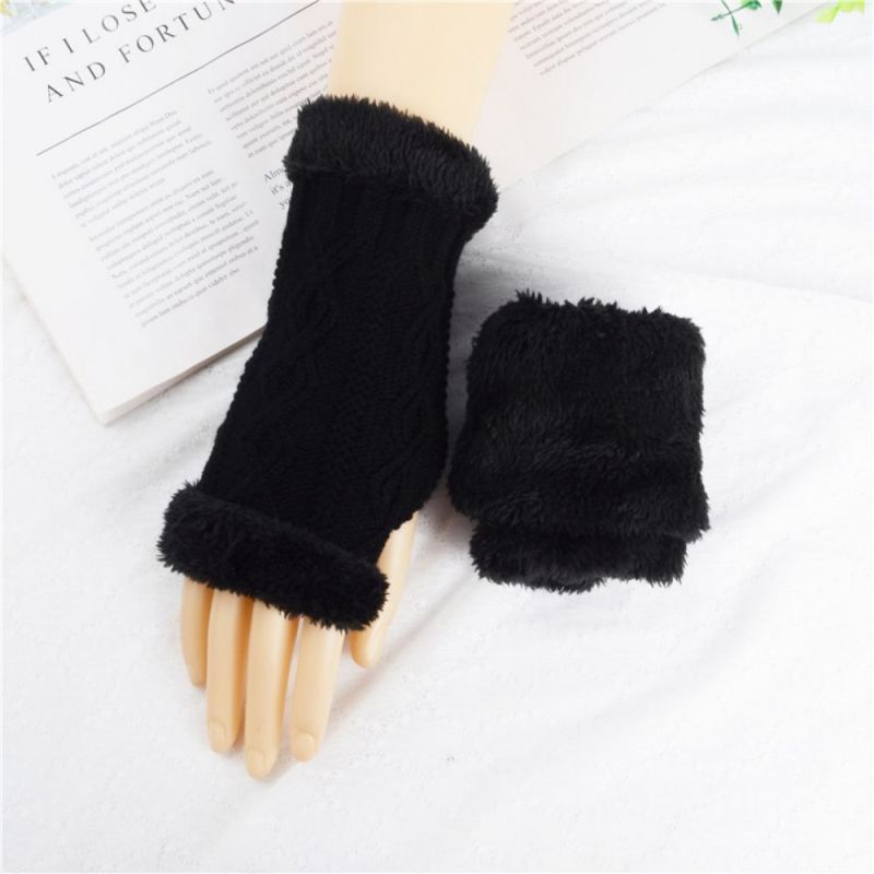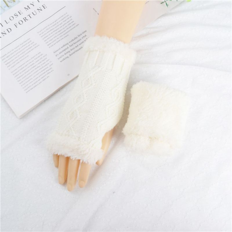 Gants Courts Tricotés À Demi-doigts Diamond Plus Velvet Épais Pour Garder Au Chaud En Hiver