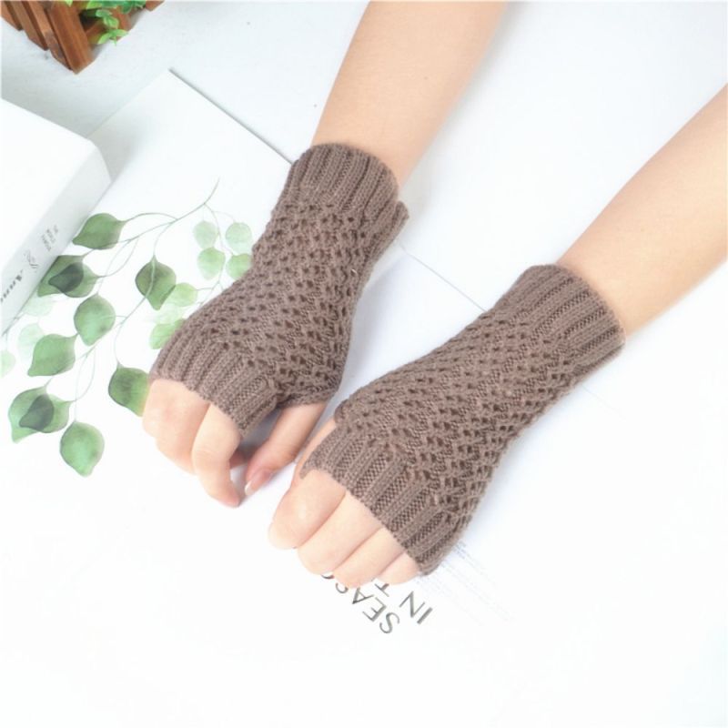 Gants Sans Doigts En Maille Demi-doigt Tricotés Gants Courts Chauds Pour Femmes De Couleur Unie