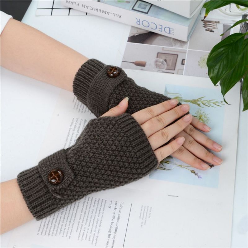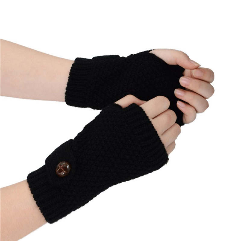 Gants Courts En Laine Tricotée Demi-doigt Adulte Femme Ananas Bouton Hiver Demi-gants Sans Doigts