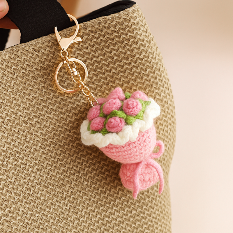 Porte-clés Bouquet Tricoté En Laine, Joli Cadeau, Simulation De Sac De Tournesol, Pendentif À Breloque, Cadeau De Remise De Diplôme