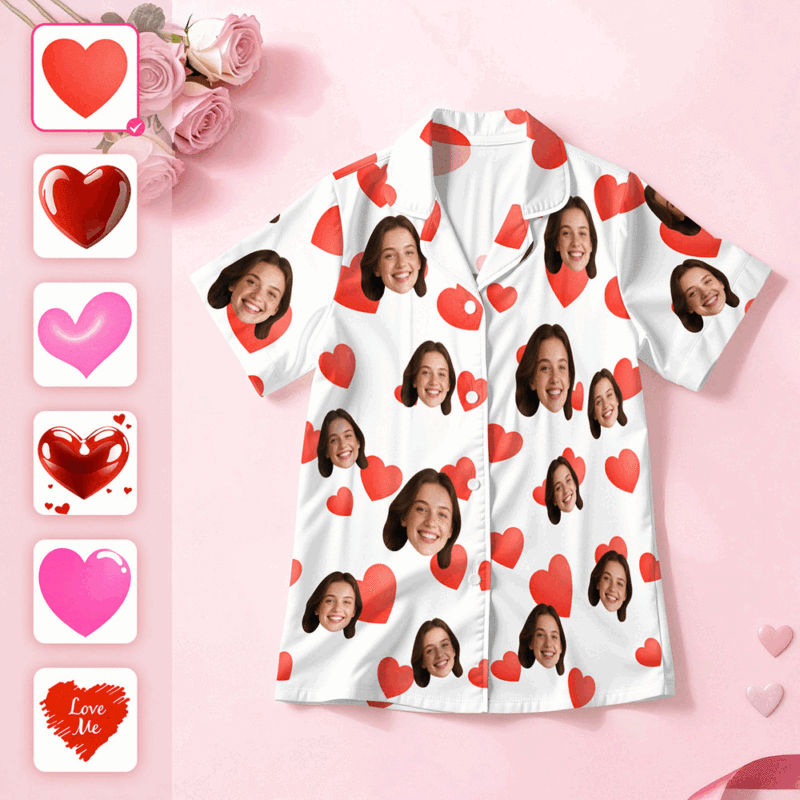 Pyjamas À Manches Courtes Personnalisés Avec Visage Et Cœur, Vêtements De Nuit Pour Couples, Cadeaux De Saint-valentin Pour Lui