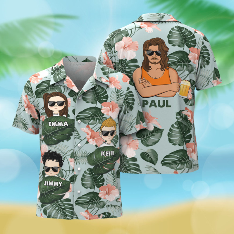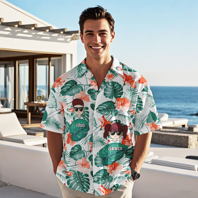 Chemise Hawaïenne Personnalisée Avec Dessin Animé, Cadeau D'anniversaire Idéal Pour Papa, Grand-père Ou Père. Chemise Hawaïenne Personnalisée Avec Nom.