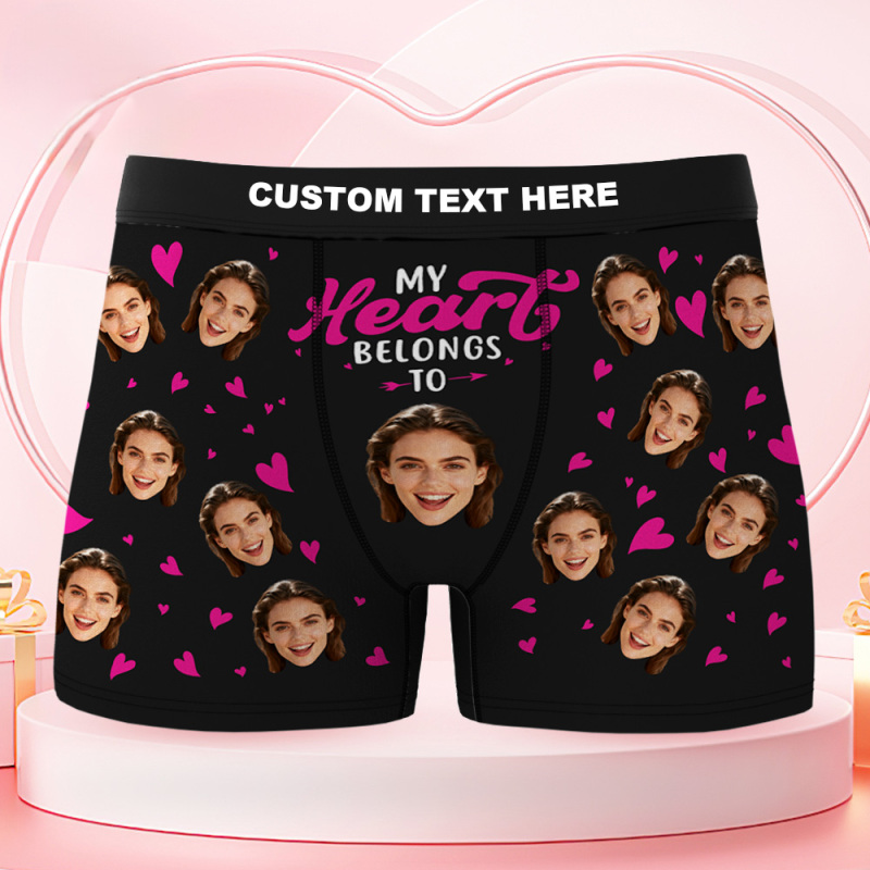 Boxers Personnalisés Avec Photo Humoristique « Mon Cœur Lui Appartient », Cadeau Pour Homme
