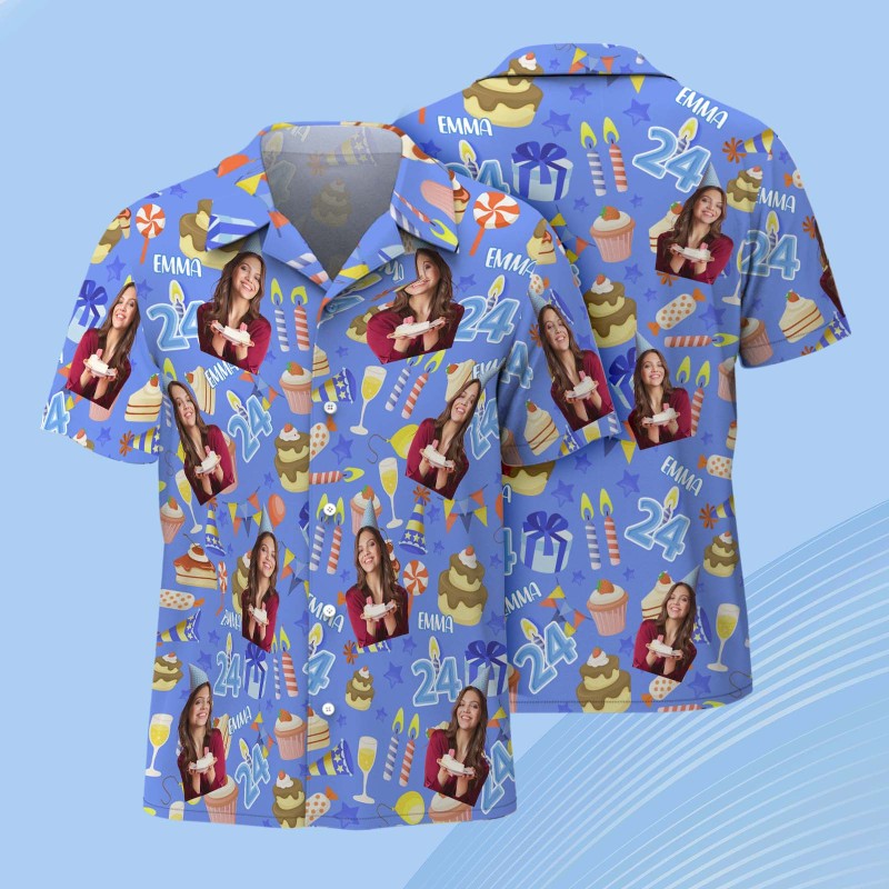 Chemise Hawaïenne Visage Personnalisé Anniversaire Personnalisé Hommes Chemise Hawaïenne Joyeux Anniversaire À Moi