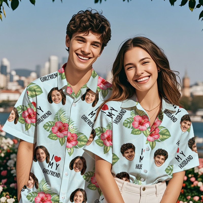 Chemise Hawaïenne Personnalisée Avec Visage, Vacances D'été, Couple, Chemise Hawaïenne Avec Visage, J'aime Ma Femme, Chemise Hawaïenne À Fleurs