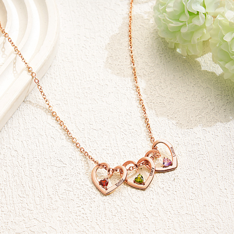 Collier Personnalisé Avec Pierre De Naissance Et Nom En Forme De Cœur Pour Maman Et Grand-mère
