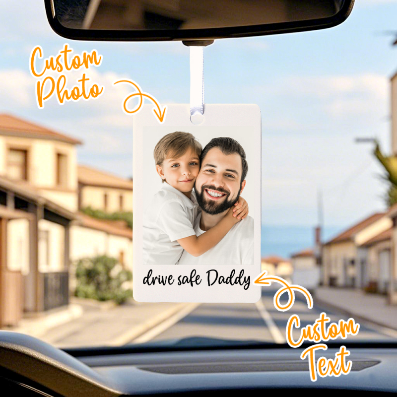 Surprenez vos proches avec un cadeau attentionné et personnalisé qui témoigne de votre affection. Que ce soit pour un anniversaire, pour honorer un membre de la famille ou pour célébrer un événement important, nos décorations de voiture avec photo sont le moyen idéal d'immortaliser des souvenirs et de répandre la joie à chaque trajet. Conçues pour durer, nos décorations sont faites pour résister aux aléas de la route tout en conservant leur beauté. Qu'il s'agisse d'un cliché d'un moment précieux avec vos proches ou d'une commémoration d'une étape marquante comme l'acquisition de votre première voiture, ces décorations sont autant de rappels tangibles des moments les plus précieux de la vie. Transformez votre voiture en un précieux voyage grâce à nos décorations de voiture avec photo personnalisées ! Chaque décoration est confectionnée avec soin pour vous accompagner dans tous vos déplacements, en y apportant chaleur et positivité. Grâce à une technologie d'impression UV de pointe, nous immortalisons la photo de votre choix sur de l'acrylique durable, garantissant ainsi que vos précieux souvenirs restent éclatants et intacts pour longtemps.