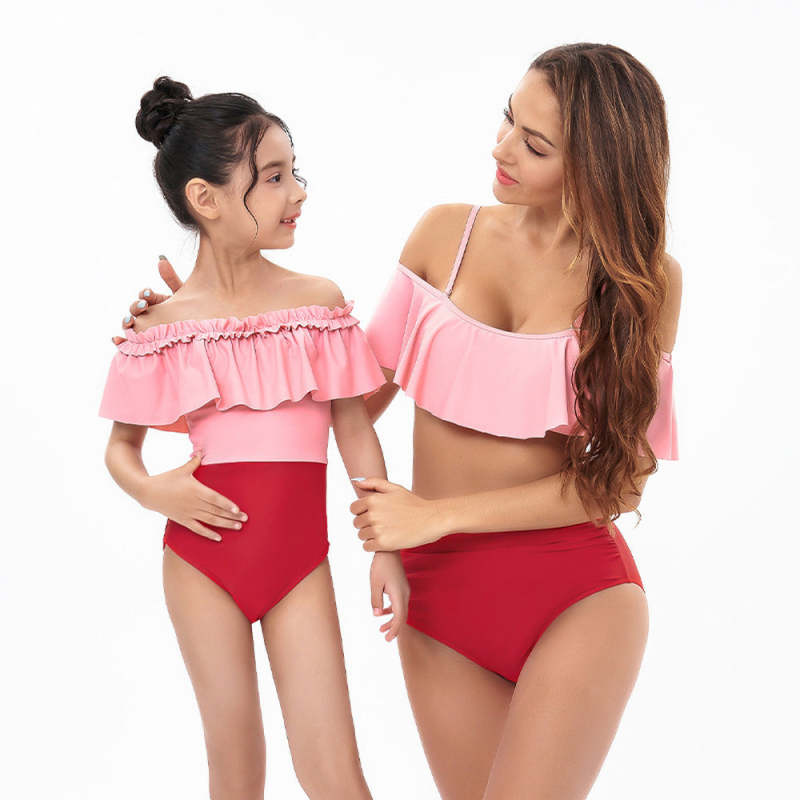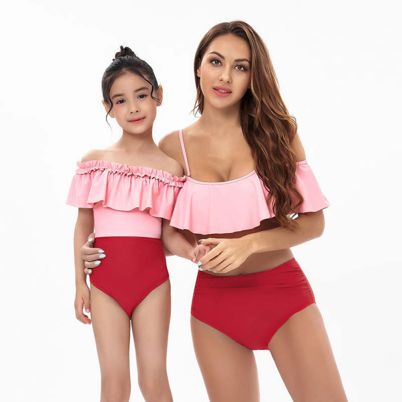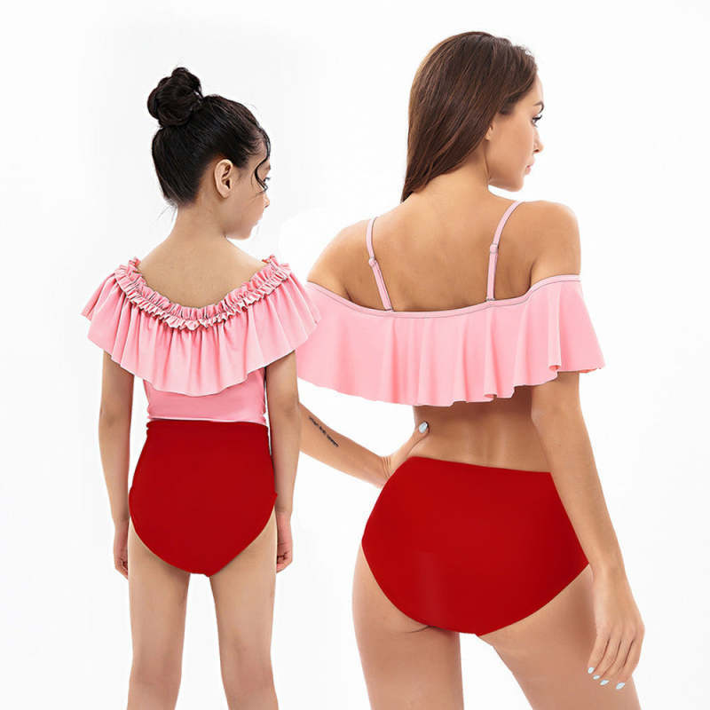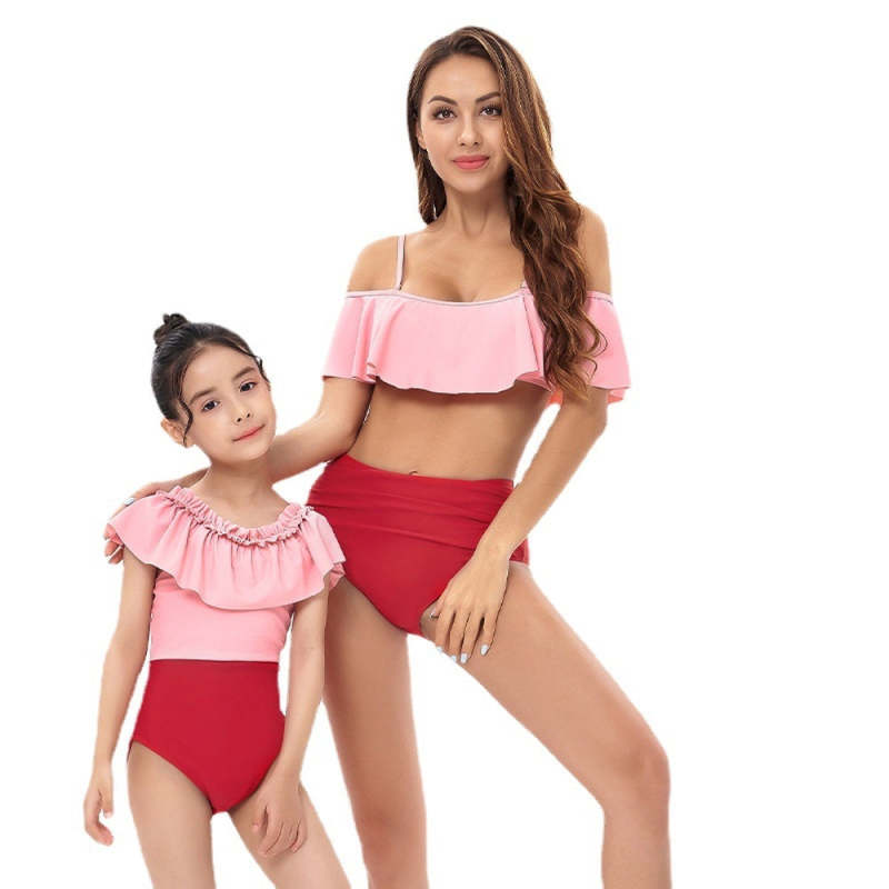 Ébouriffer Taille Haute Bikini Maillot De Bain Parent-Enfant