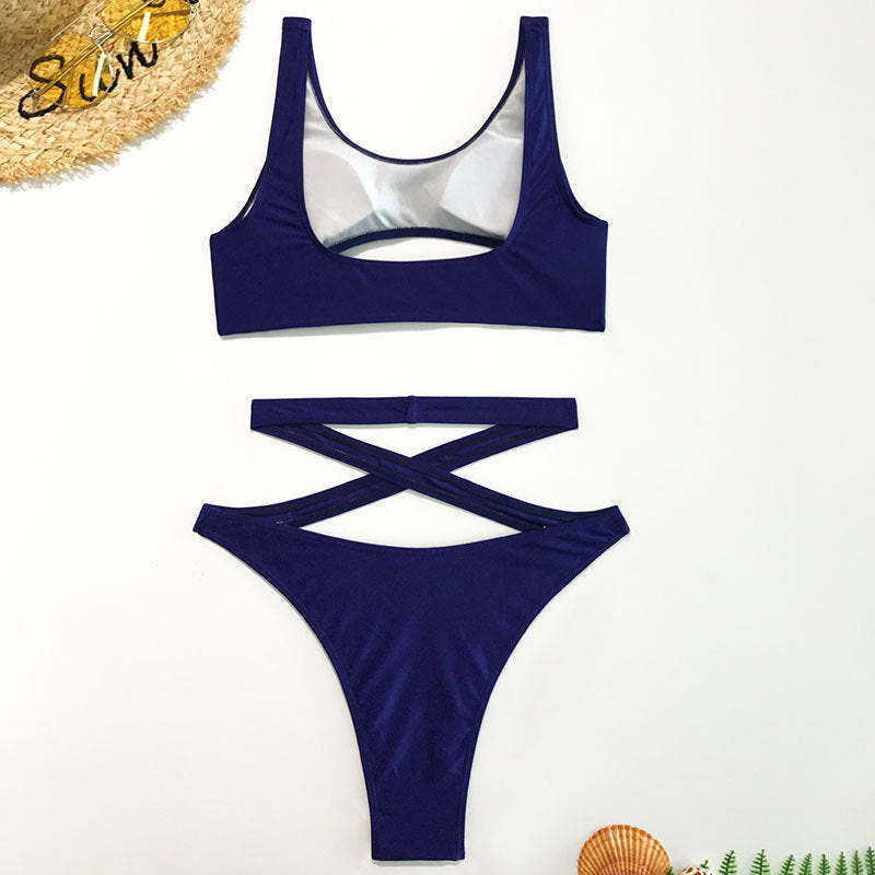 Maillot De Bain Fendu Sexy Bikini Bleu Foncé Pour Femme