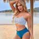 Bretelles Bikini Rayé Fendu Taille Haute