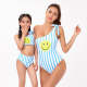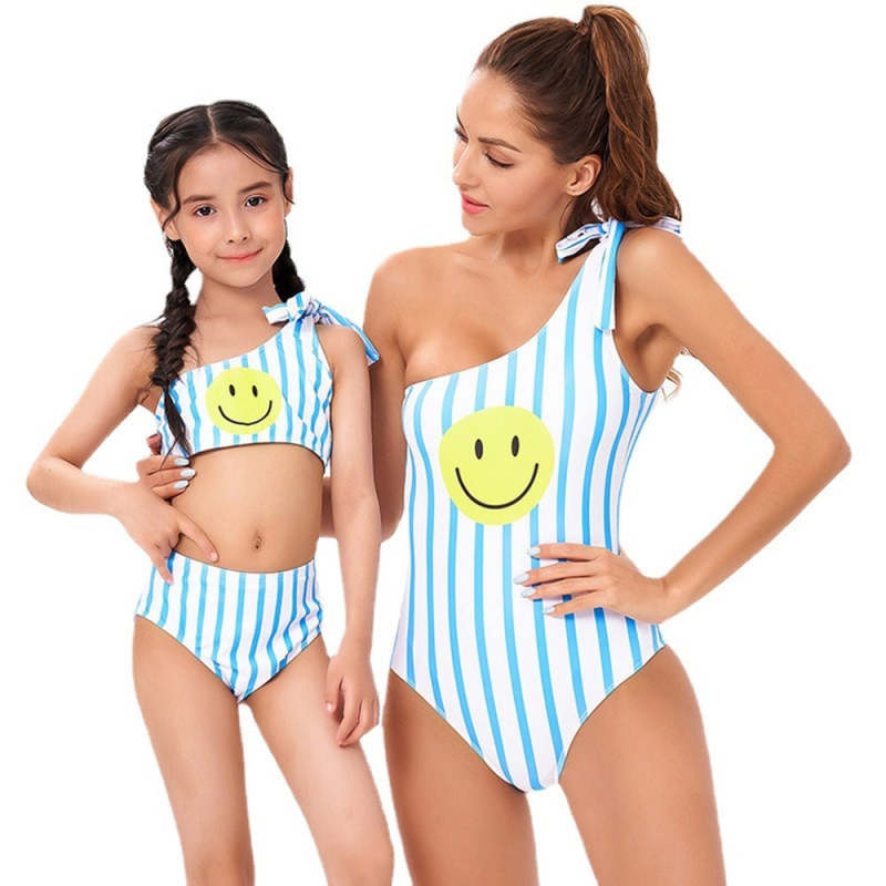 Smiley Bikini Un Morceau Maillot De Bain À Rayures Parent-Enfant