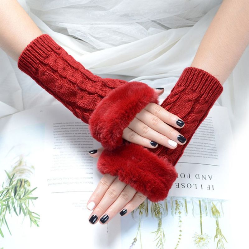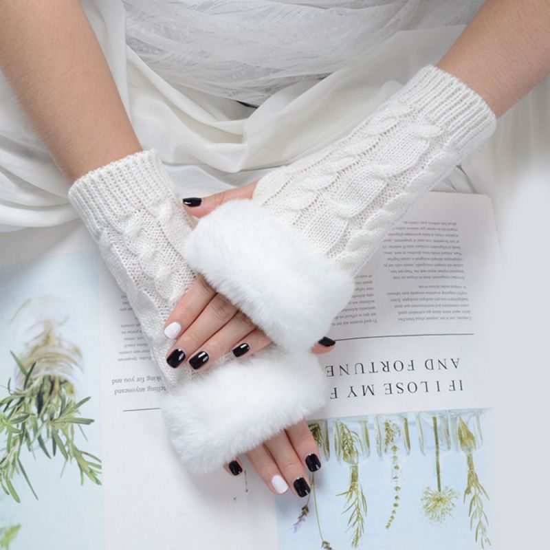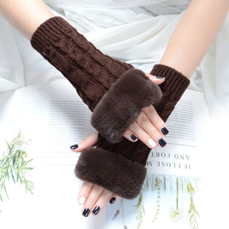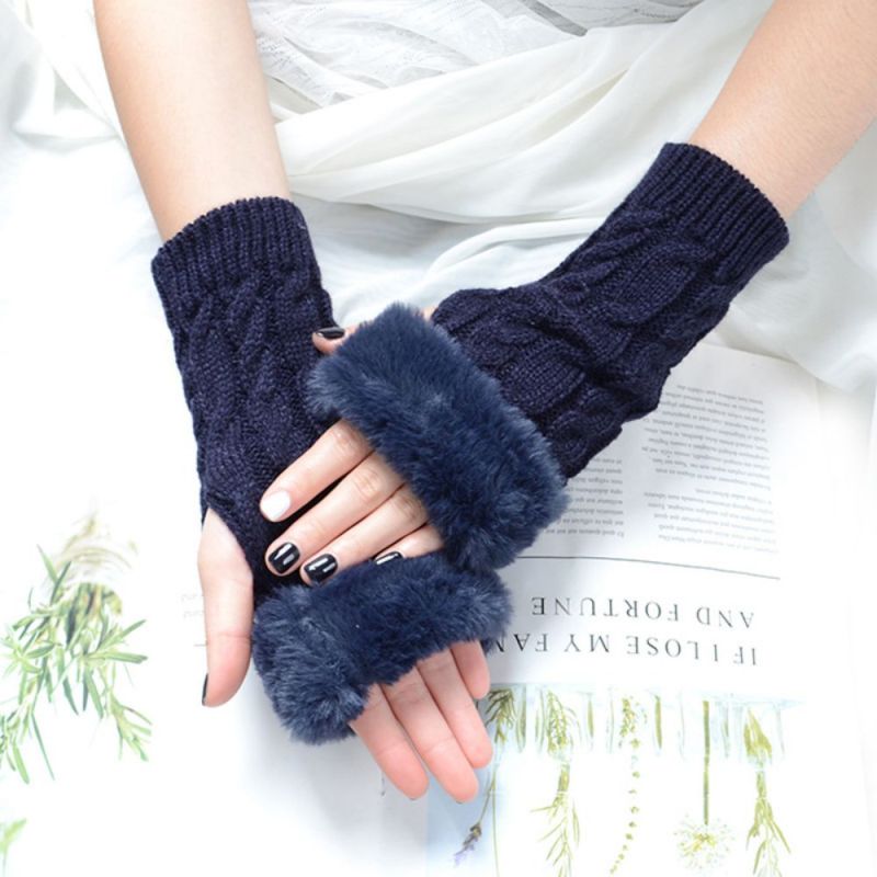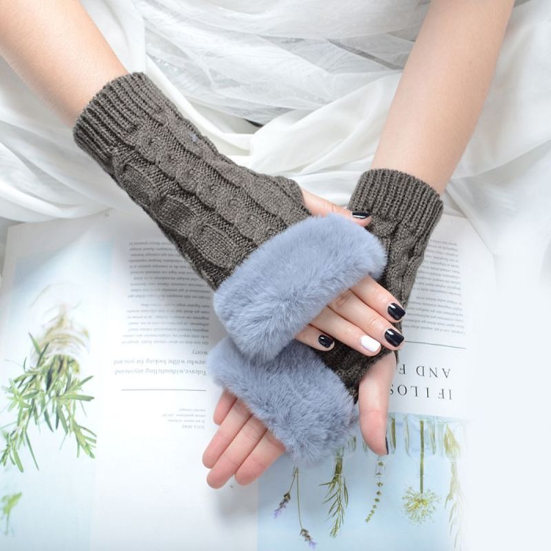 Gants Sans Doigts À Demi-doigts En Tricot Chaud Pour Femmes Gants Solides À Rabat